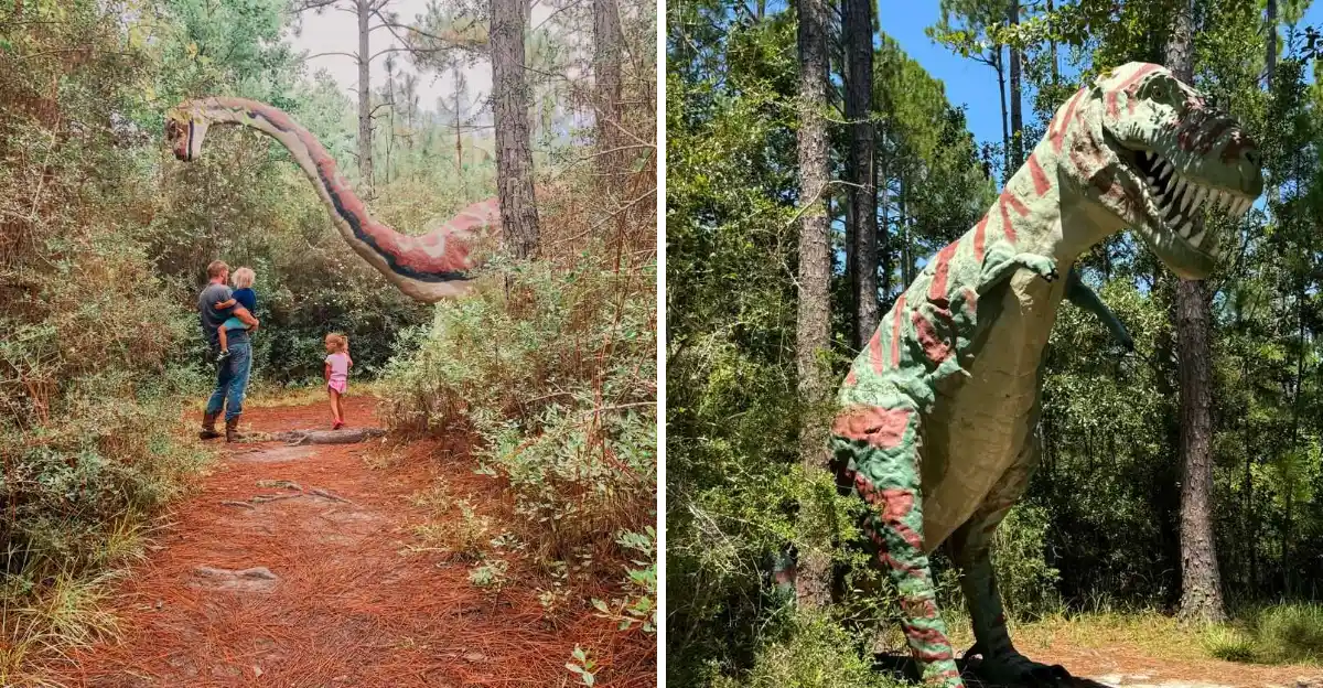 Tucked along Barber Parkway in Elberta, a quiet trail suddenly erupts with life sized dinosaurs that peek through the pines. You follow a sandy path, …