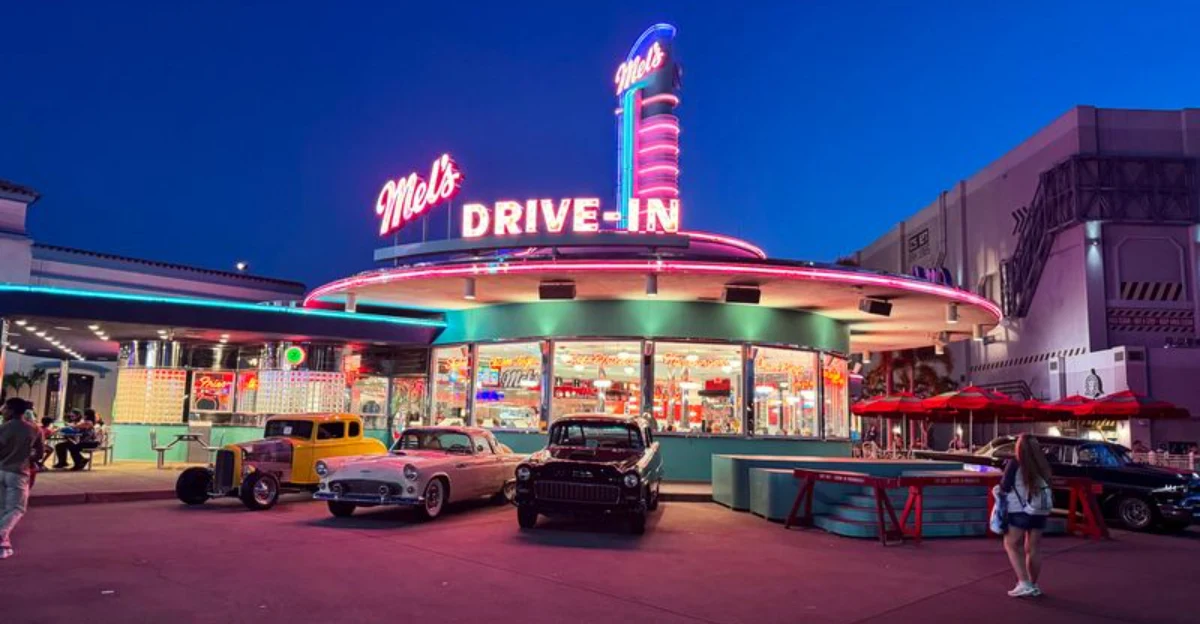 Step under the twinkling stars and settle into a gleaming car-shaped booth where retro sci-fi clips flicker across a giant screen. The Sci-Fi Dine-In Theater …