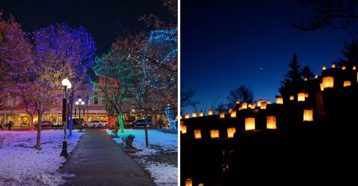 New Mexico has a high-desert city where farolitos, adobe streets, and softly lit plazas shape a distinctly seasonal holiday visit