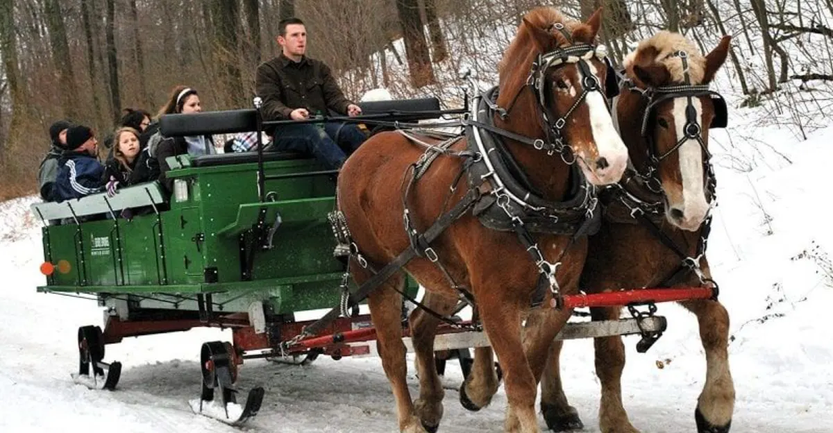 Close your eyes and picture a quiet trail where snow softens every sound, and a horse-drawn sleigh glides beneath frosted pines. That scene lives at …