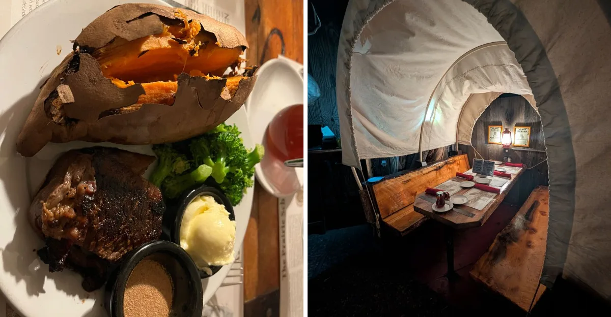 This place looks unusual — and that’s exactly the point.Prairie Schooner Steak House doesn’t try to impress you. It wins you over anyway. From the …